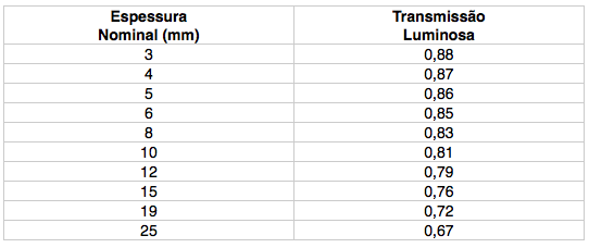 Assim, a quantidade de luz disponível dentro do ambiente dependerá da quantidade da transmissão de luz através do vidro, ou seja, quanto maior a transmissão de luz através do vidro, maior a quantidade de luz dentro do ambiente.